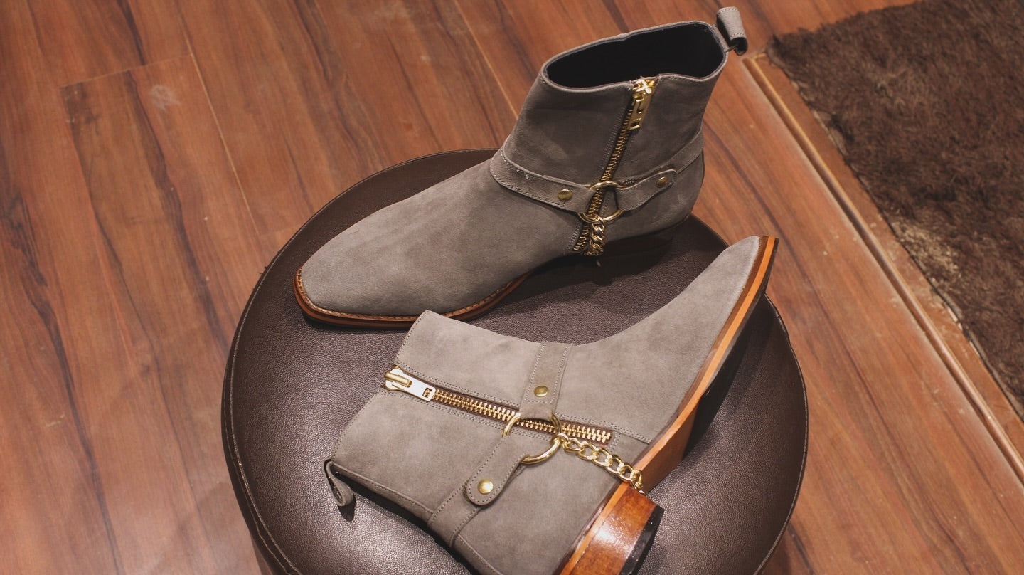 Men's Suede Side Zip Metal Chain Chelsea Boots