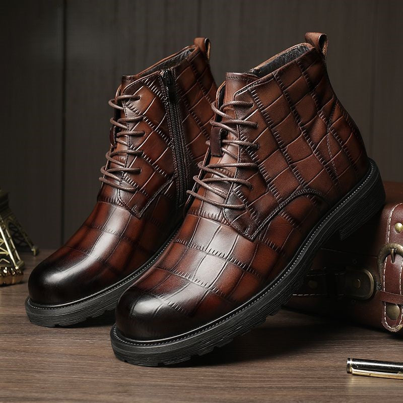 Stylish checked leather boots for men